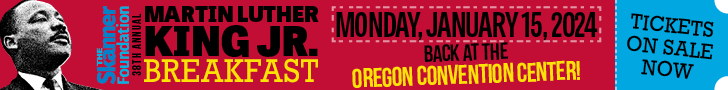 This year, The Skanner Foundation’s Martin Luther King Jr. Breakfast returns to the Oregon Convention Center in a larger space. As usual, the attendees will listen to inspiring words from our elected officials, hear from previous student scholarship winners, and enjoy local musical talent. The breakfast will also be an occasion to present The Skanner Foundation’s Drum Major for Justice award.